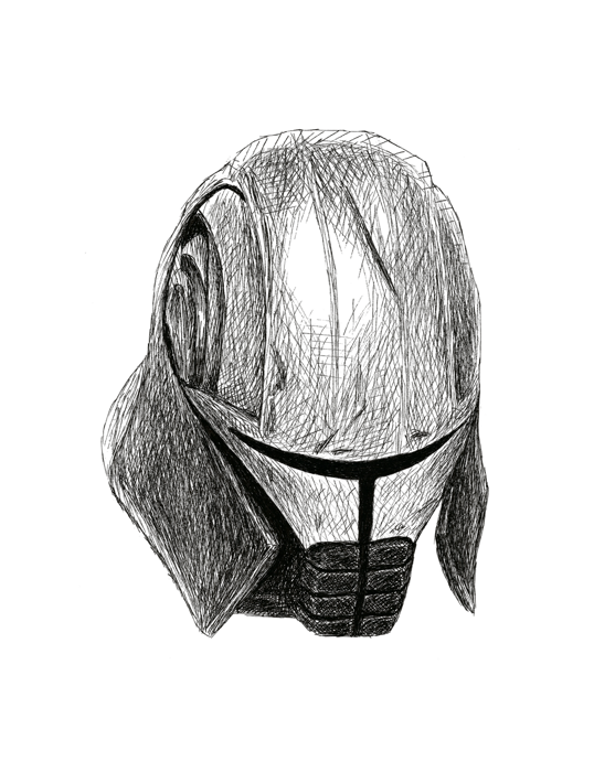 Starkiller helmet (Star Wars: The Force Unleashed) pen drawing printed on matte white, archival quality, 120 gsm paper. Unframed, signed on the back.